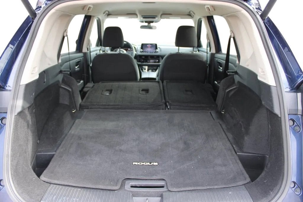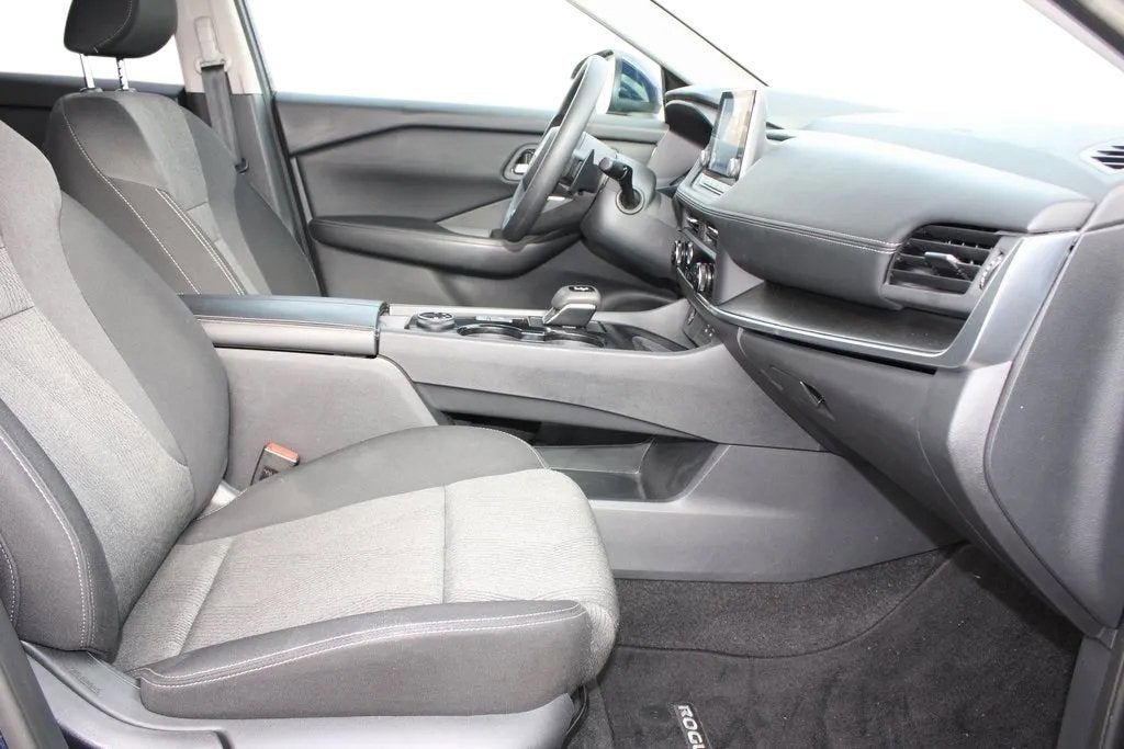 This Nissan Rogue has many features and is well equipped including, 4-Wheel Disc Brakes, 5.676 Axle Ratio, 6 Speakers, ABS brakes, Air Conditioning, Alloy wheels, AM/FM radio: SiriusXM, Auto High-beam Headlights, Automatic temperature control, Brake assist, Bumpers: body-color, Cloth Seat Trim w/Patterned Inserts, Delay-off headlights, Driver door bin, Driver vanity mirror, Dual front impact airbags, Dual front side impact airbags, Electronic Stability Control, Emergency communication system: NissanConnect Services, First Aid Kit, Floor Mats w/1-Piece Cargo Area Protector, Four wheel independent suspension, Front anti-roll bar, Front Bucket Seats, Front Center Armrest, Front dual zone A/C, Front reading lights, Fully automatic headlights, Heated door mirrors, Illuminated entry, Knee airbag, Low tire pressure warning, NissanConnect featuring Apple CarPlay and Android Auto, Occupant sensing airbag, Outside temperature display, Overhead airbag, Overhead console, Panic alarm, Passenger door bin, Passenger vanity mirror, Power door mirrors, Power driver seat, Power Liftgate, Power steering, Power windows, Radio data system, Radio: AM/FM NissanConnect, Rear anti-roll bar, Rear Parking Sensors, Rear seat center armrest, Rear side impact airbag, Rear window defroster, Rear window wiper, Remote keyless entry, Speed control, Speed-Sensitive Wipers, Split folding rear seat, Spoiler, Steering wheel mounted audio controls, Tachometer, Telescoping steering wheel, Tilt steering wheel, Traction control, Trip computer, Variably intermittent wipers, Wheels: 18 Dark Painted Machine Finished Alloy.