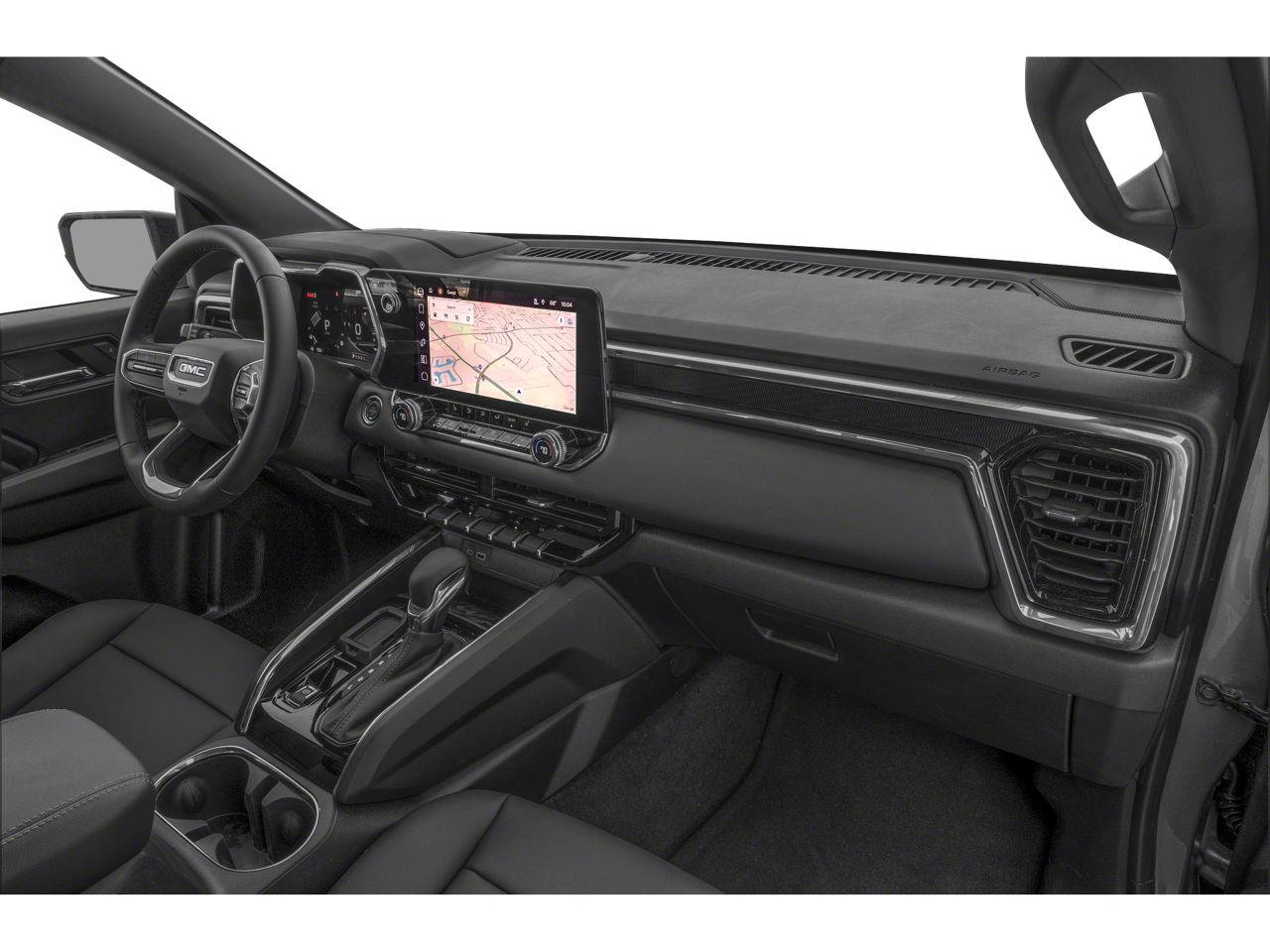 This GMC Canyon has many features and is well equipped including, 1 Rear USB Port in Center Console (Charge-Only), 120-Volt Bed Mounted Power Outlet, 2 1st Row USB Charge/Data Ports, 2 Rear USB Ports in Center Console (Charge-Only), 3.42 Rear Axle Ratio, 4-Way Manual Front Passenger Seat Adjuster, 4-Wheel Disc Brakes, 6 Speakers, 6-Speaker Audio System Feature, 6-Way Manual Driver Seat Adjuster, ABS brakes, Air Conditioning, Alloy wheels, AM/FM radio, Apple CarPlay/Android Auto, Auto High-beam Headlights, Automatic Emergency Braking, Automatic Stop/Start, Black Assist Step (LPO), Black Badges (LPO), Blind Zone Steering Assist w/Trailering, Brake assist, Bumpers: body-color, Canyon Pro Safety, Canyon Safety Plus Package, Cloth Seat Trim, Compass, Convenience Package, Delay-off headlights, Driver & Front Passenger Illuminated Visors, Driver door bin, Driver Mode Selector, Driver vanity mirror, Dual front impact airbags, Dual front side impact airbags, Dual-Zone Auto Climate Control Air Conditioning, Electronic Stability Control, Emergency communication system: OnStar, EZ-Lift & Lower Tailgate, Following Distance Indicator, Forward Collision Alert, Front anti-roll bar, Front Bucket Seats, Front Center Armrest, Front LED Fog Lamps, Front Passenger Seatback Map Pocket, Front Pedestrian & Bicyclist Braking, Front wheel independent suspension, Heated door mirrors, Illuminated entry, Inside Rear-View Auto-Dimming Mirror, IntelliBeam Automatic High Beam On/Off, Interior Overhead Courtesy Light w/Dual Reading Lamp, Lane Keep Assist w/Lane Departure Warning, Low tire pressure warning, MultiStow Tailgate Storage Compartment, Navigation System, Occupant sensing airbag, Off-Road Suspension, Outside temperature display, Overhead airbag, Overhead console, Panic alarm, Passenger door bin, Passenger vanity mirror, Power door mirrors, Power steering, Power windows, Preferred Equipment Group 4VL, Radio data system, Radio: 11.3 Diagonal Premium GMC Infotainment Sys, Rear Cross Traffic Braking, Rear of Console 120-Volt Power Outlet, Rear reading lights, Rear step bumper, Rear window defroster, Remote keyless entry, Remote Vehicle Starter System, Security system, SiriusXM w/360L, Speed control, Speed-sensing steering, Split folding rear seat, Spray-On Bedliner w/GMC Logo, Steering wheel mounted audio controls, Stop/Start System Disable Button Engine Control, Tachometer, Tailgate Keyed Cylinder Lock, Tilt & Telescopic Manual Steering Column, Tilt steering wheel, Traction control, Trip computer, Ultrasonic Rear Park Assist, Variably intermittent wipers, Wheels: 18 x 8.5 Dark Gray Painted Aluminum, Wireless Apple CarPlay/Wireless Android Auto.